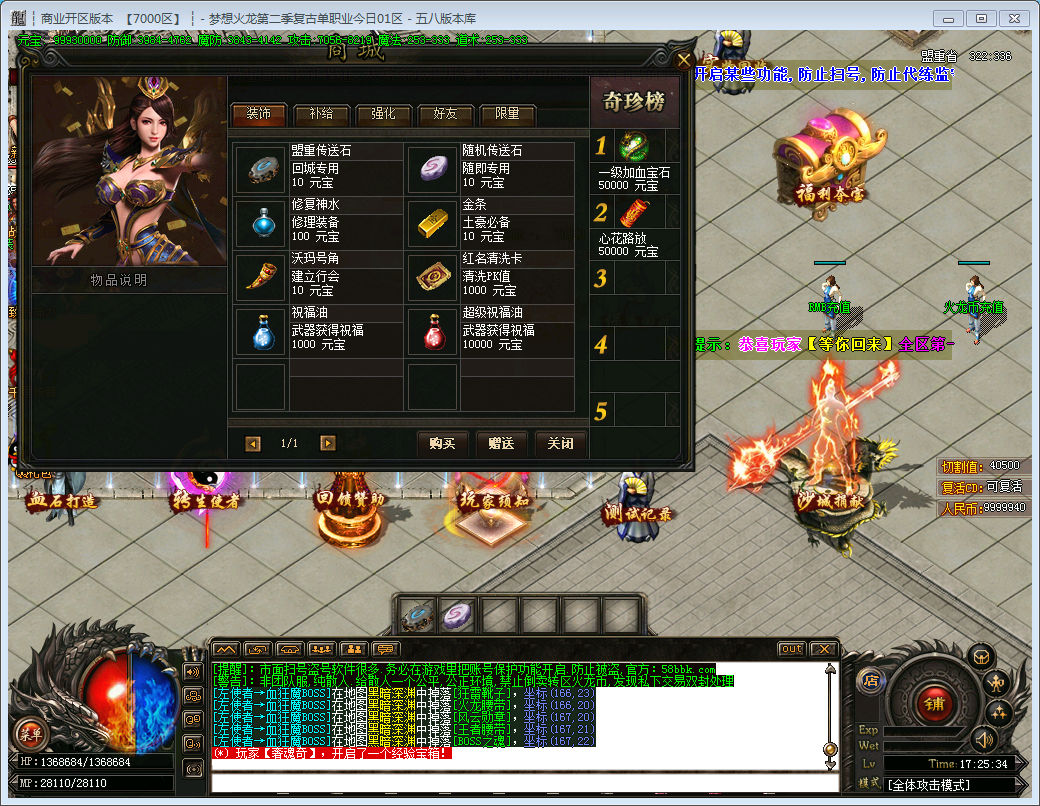 【龙币比例】:1米等于100火龙币 多充多送 详情游戏火龙币使者NPC查询