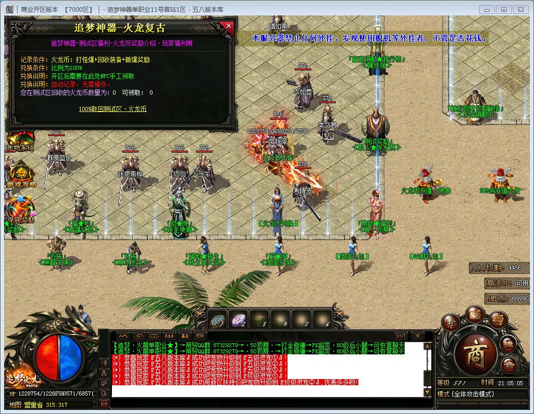 版新追梦神器II火龙复古公益单职业传奇服务端-带假人-光柱-系统-首杀奖励