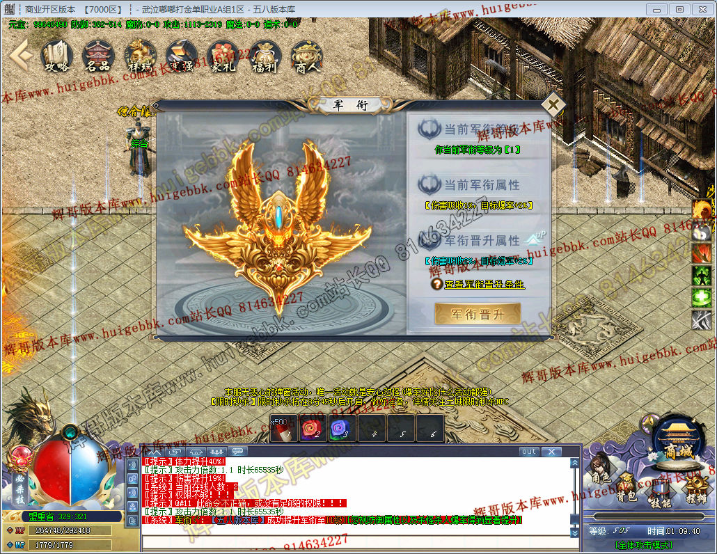 军衔晋升20阶: 1200万元宝 三宝3825组 材料对应的等级各4个 可永久回收:100米