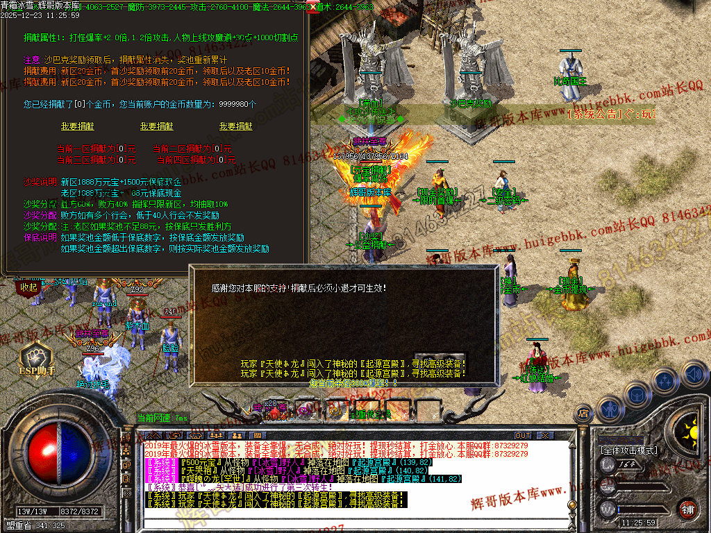 [版本介绍6]:奖励沙城 捐献NPC查询,胜利方%60,失败方%40 ,老区沙奖励:由胜利方获得!