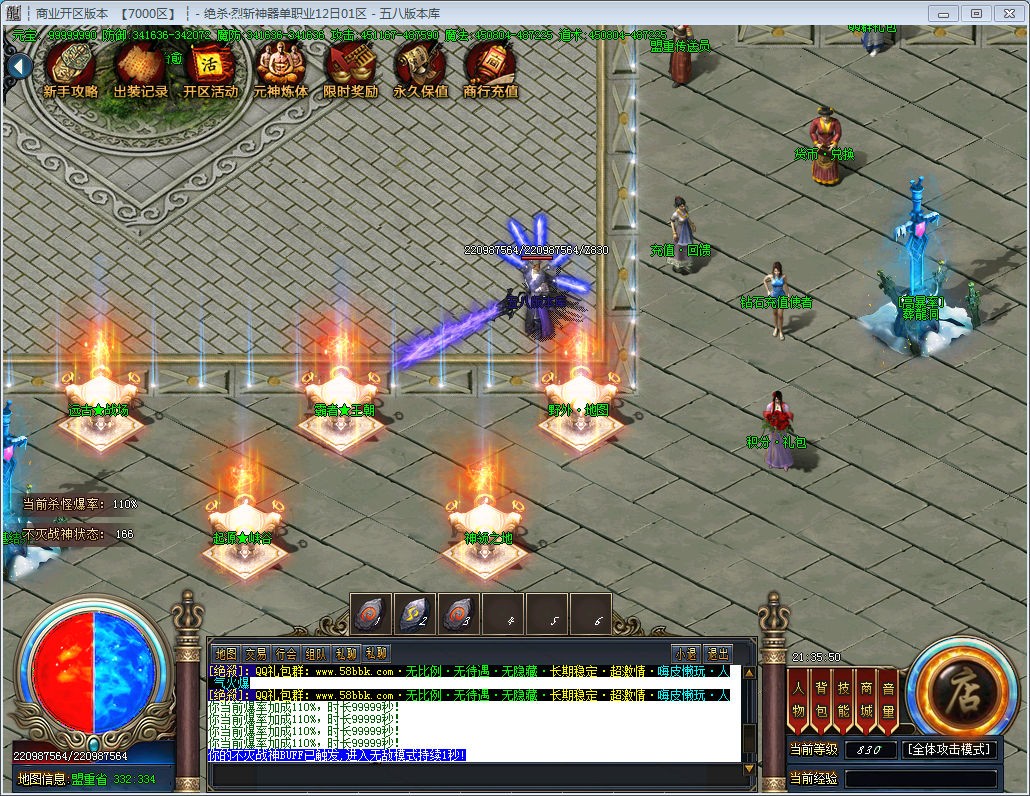 1.新人上线安全区泡点到250级,加QQ群88888领取专属礼包 NPC关注有奖坐标