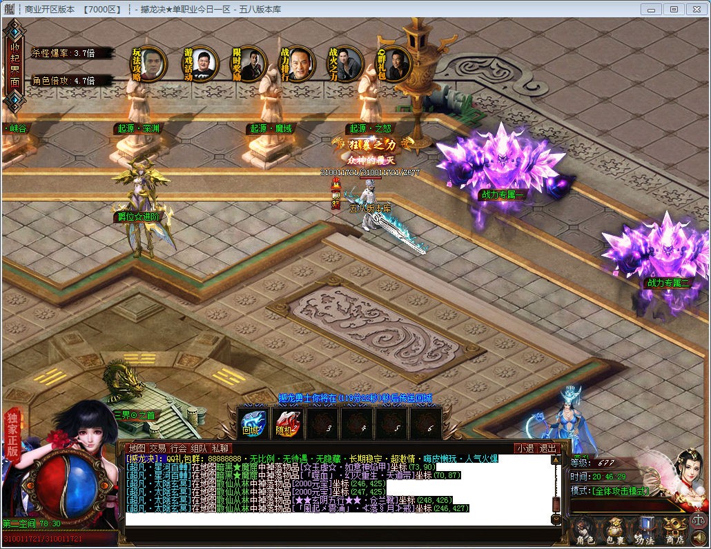 【游戏简述】:全网独家 0 门槛.花钱与不花钱全凭自己.爆率高.打怪爽!