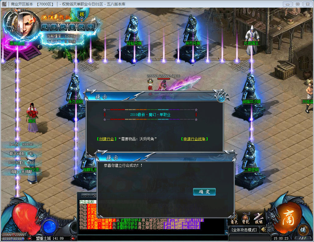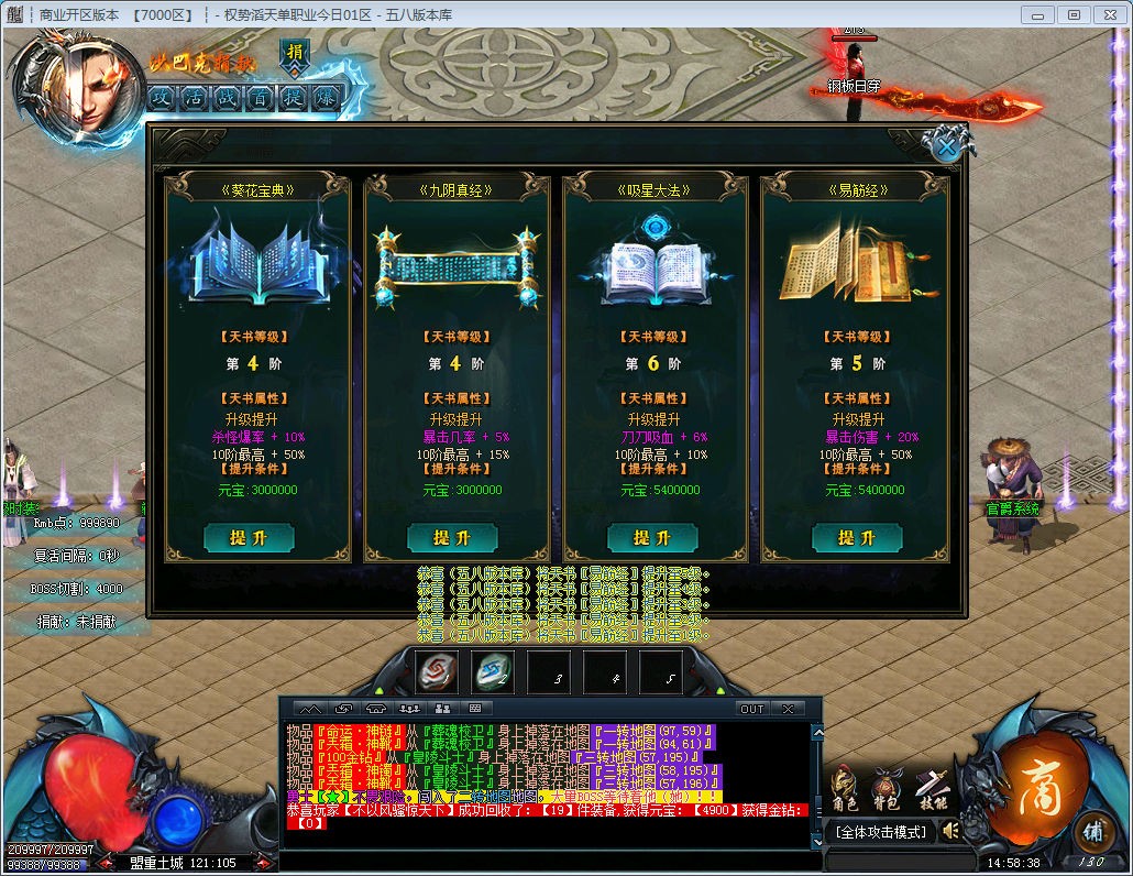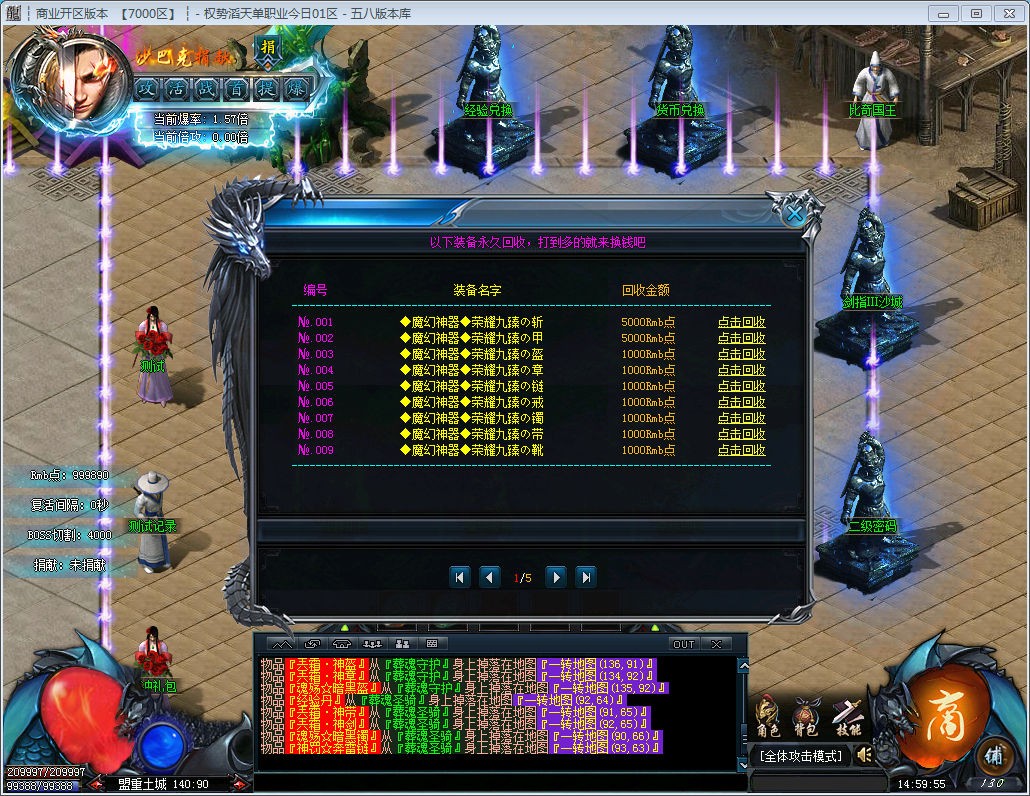 世界BOSS是爆元宝最快的地方,每只必爆100万元宝,还爆和超级装备