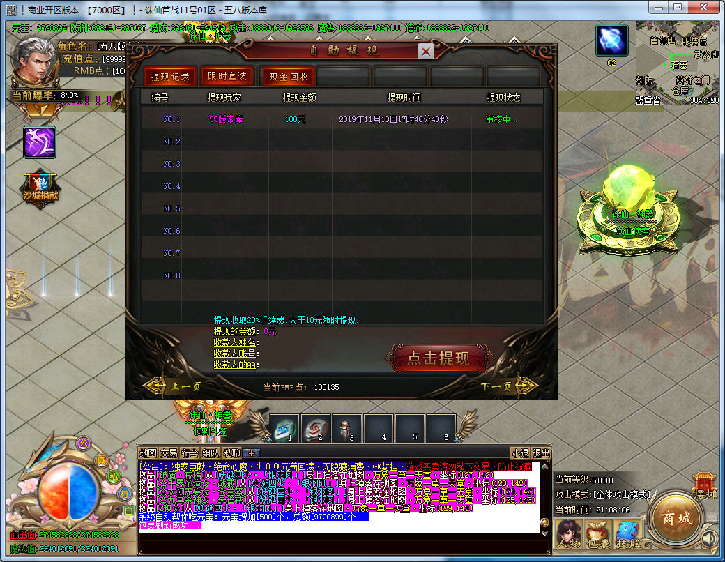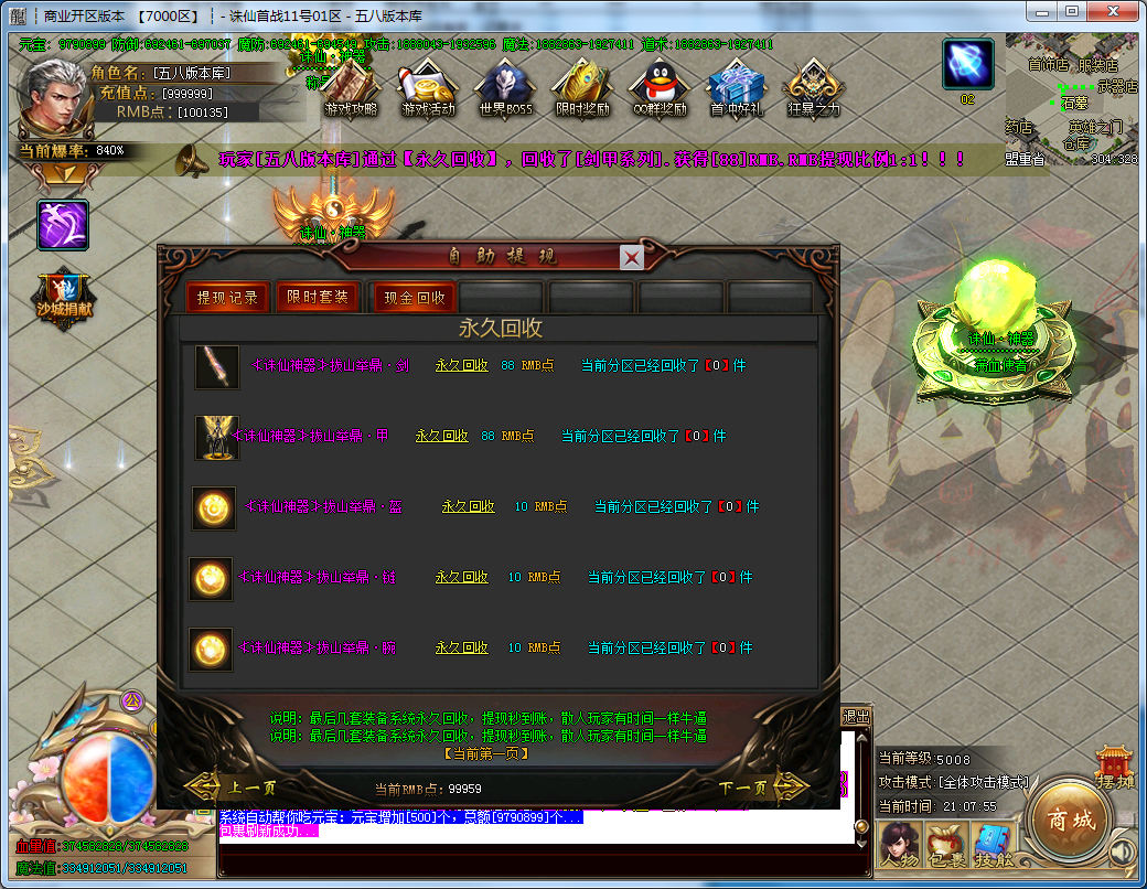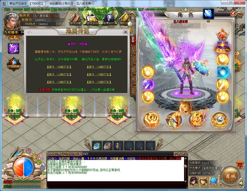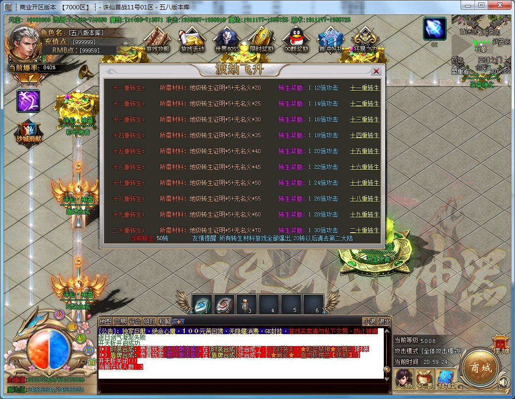 3.本服爆率全开,所有材料装备都能爆出,一切看脸,建议玩家先升等级和转生.