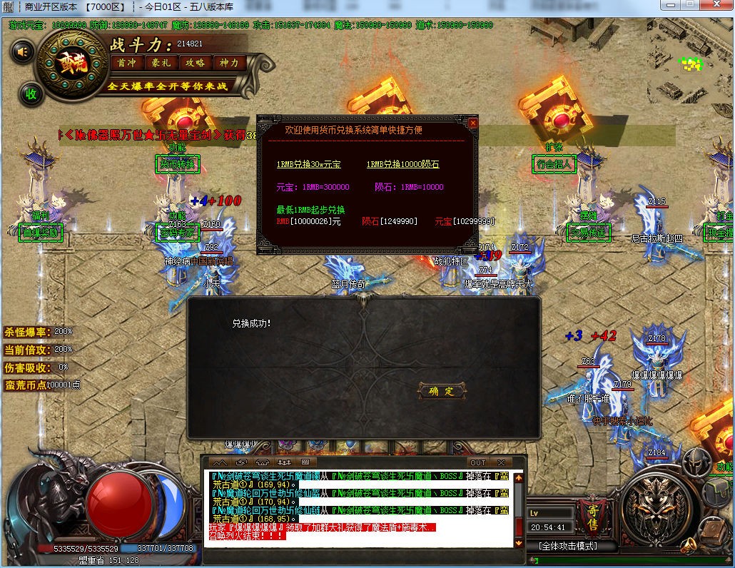 ⑦: 游戏货币介绍:元宝 → 米 蛮荒币 ,捐献,狂暴 回收 用的都是米 会员是蛮荒币