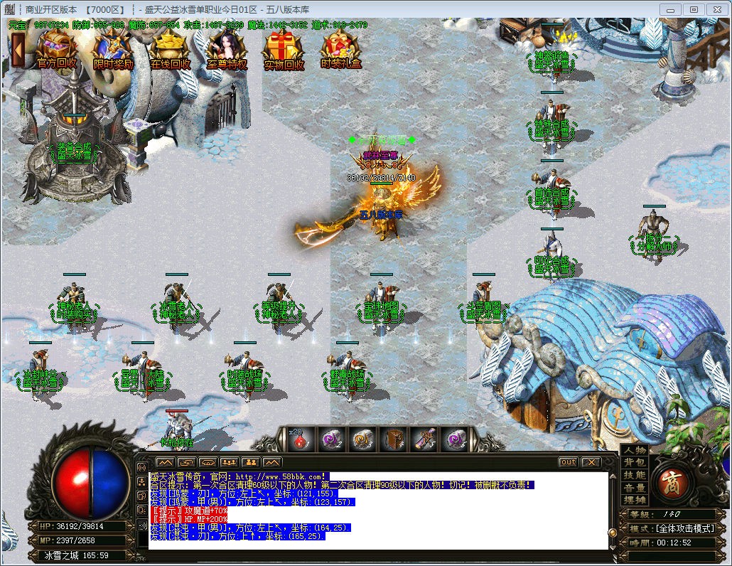 本服3转就可进入冰雪之城 商铺出售3职业群毒 打怪神器