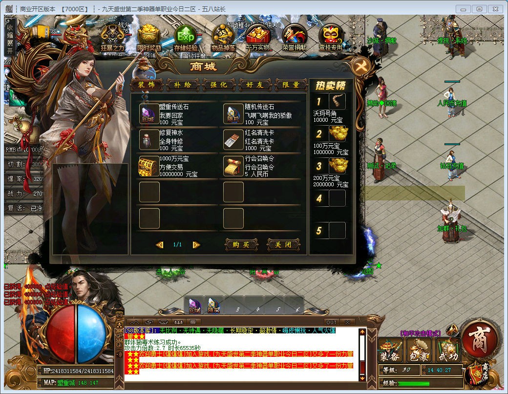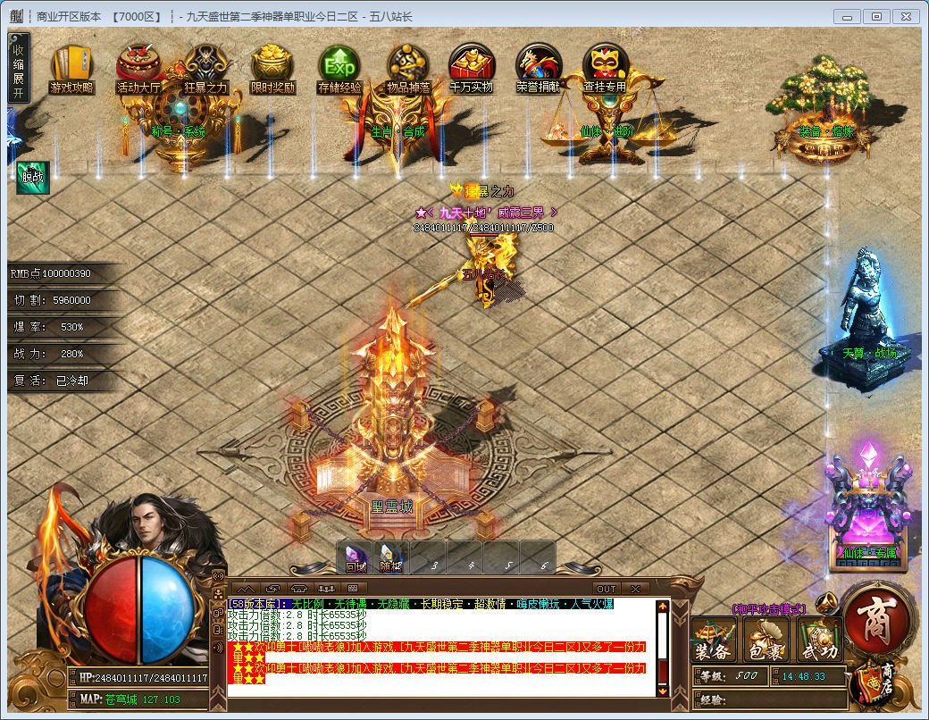 版本更新:当前版本为【九天盛世第二季】,爆率提高十倍!上线就可单挑超级BOSS