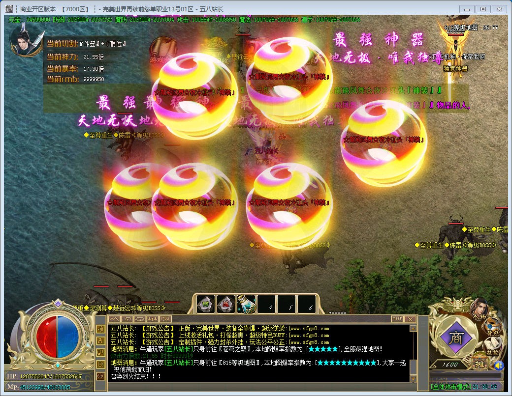 【装备暴率】:所有怪物都能爆终极,爆率在于自身的爆率倍数和刷怪数量