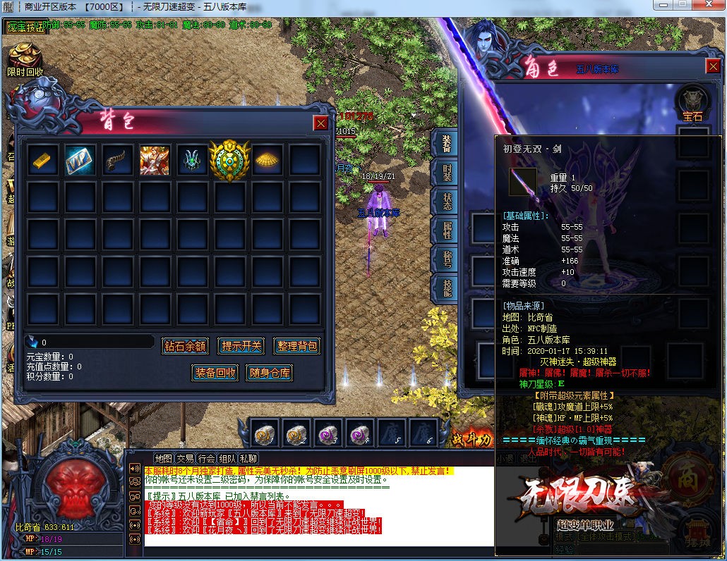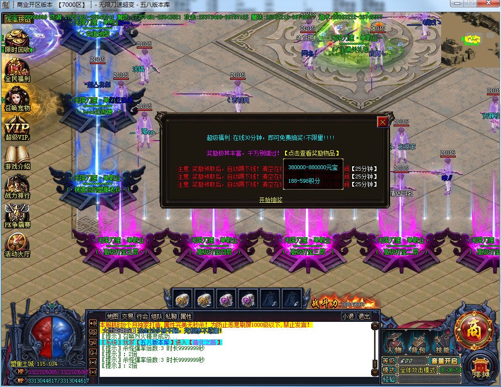 3.本服爆率全开,所有材料装备都能爆出,一切看脸,建议玩家先升级称号,加爆率