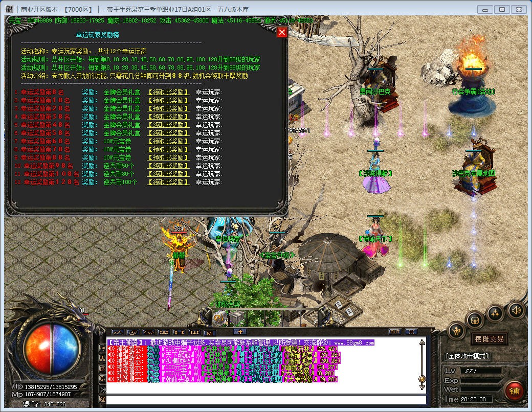 游戏玩法:本服转生和封神相当重要,赠送强悍属性,封神章更是杀人打宝的装逼利器!必须搞起!