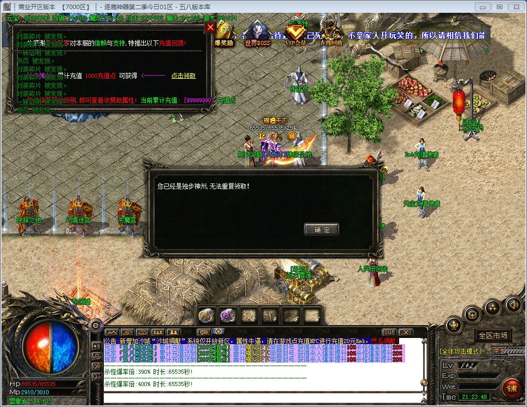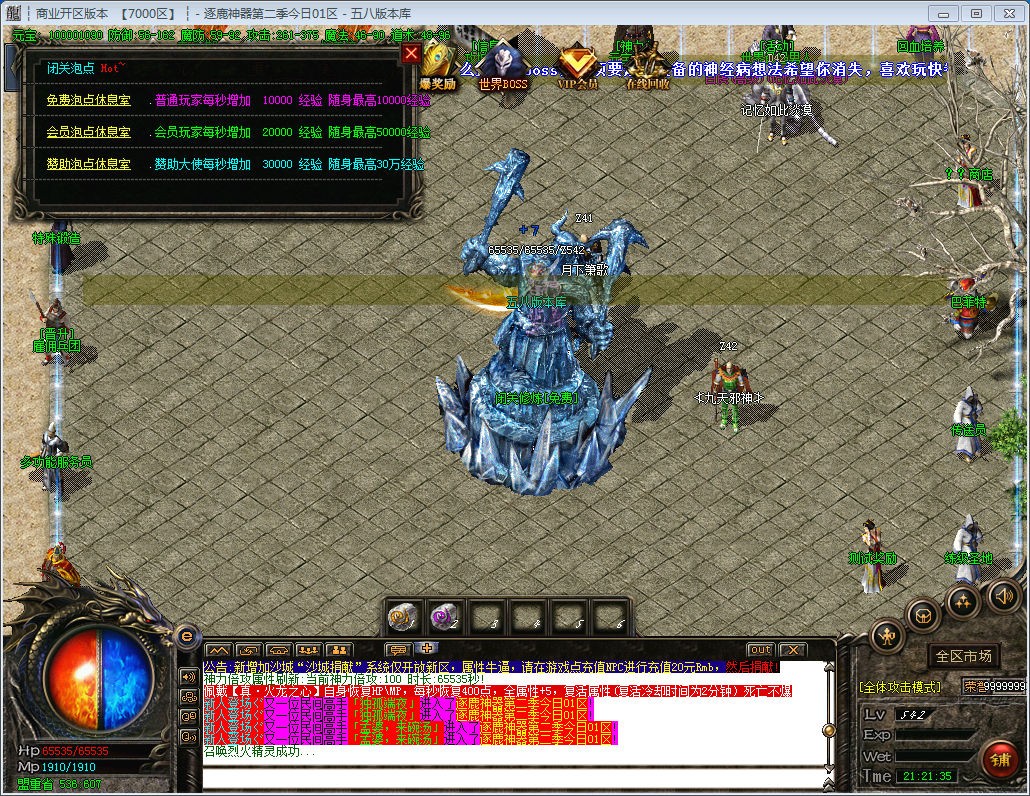 1: 散人福利 . 超多限时奖励,大量首杀BOSS 丰富首杀奖励,装备永久回收米