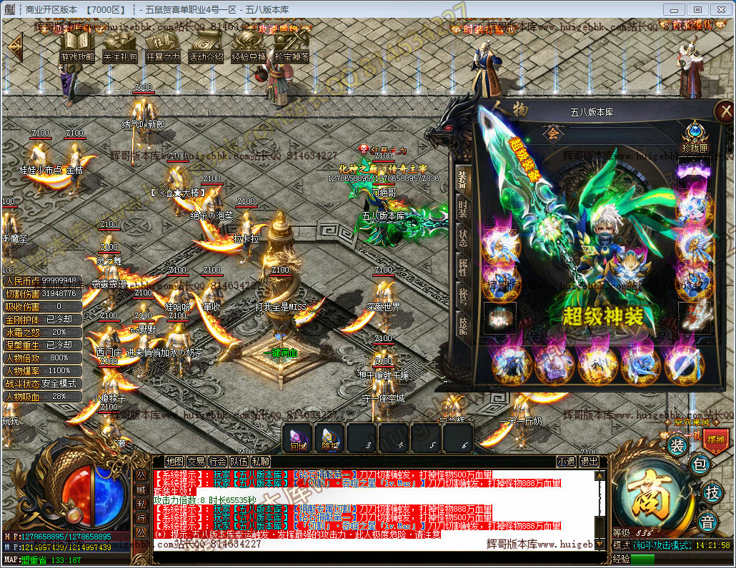 ①:本服领QQ群礼包可获得永久冰冻、刀刀切割、逐日和开天斩等,真正做到不花钱上线就能撸死所有BOSS…
