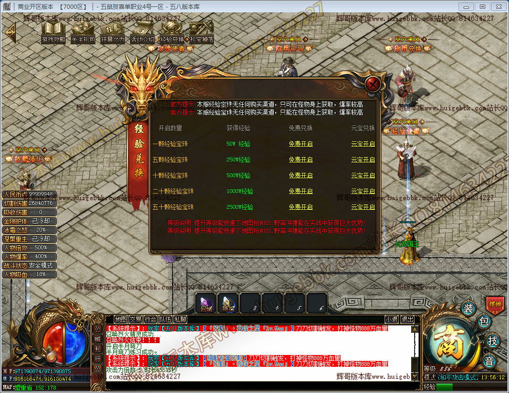 ⑤:本服充分考虑散人玩家感受,拉近散人玩家和土豪之间的距离,我们承诺所有地图刷新怪物一致,后面高级