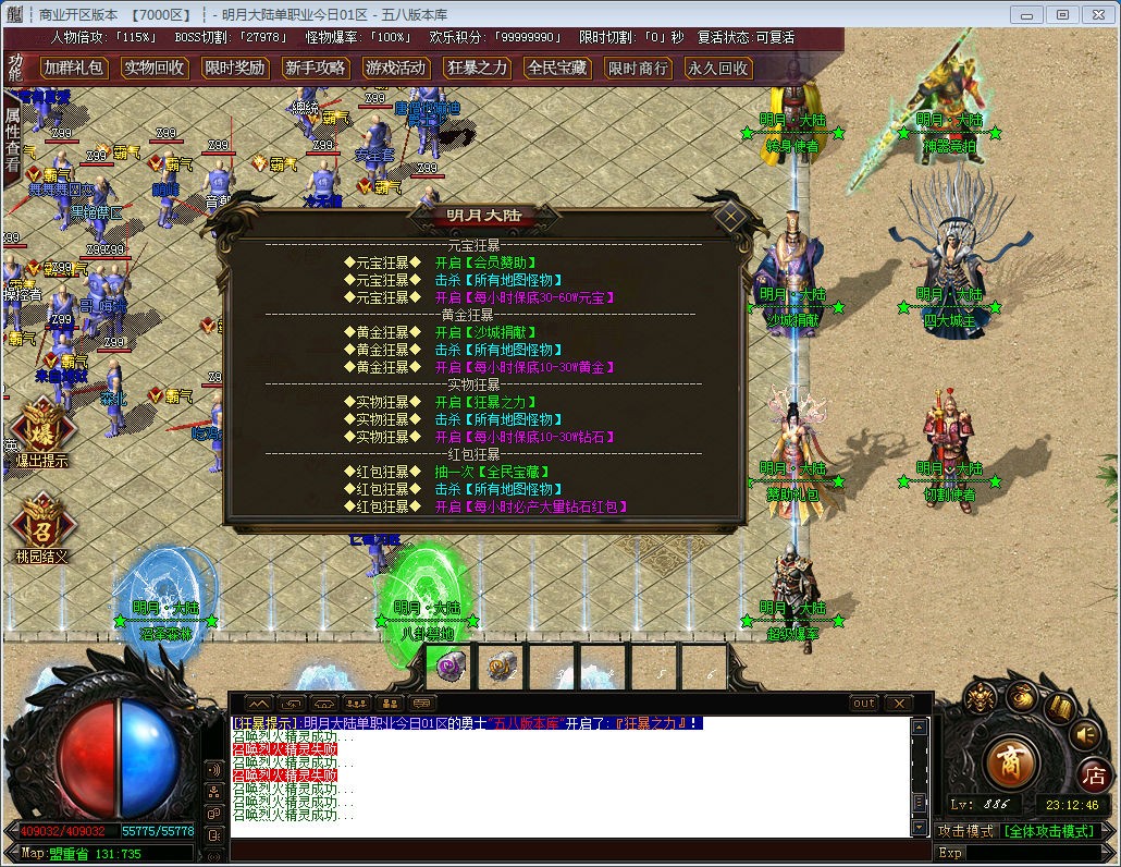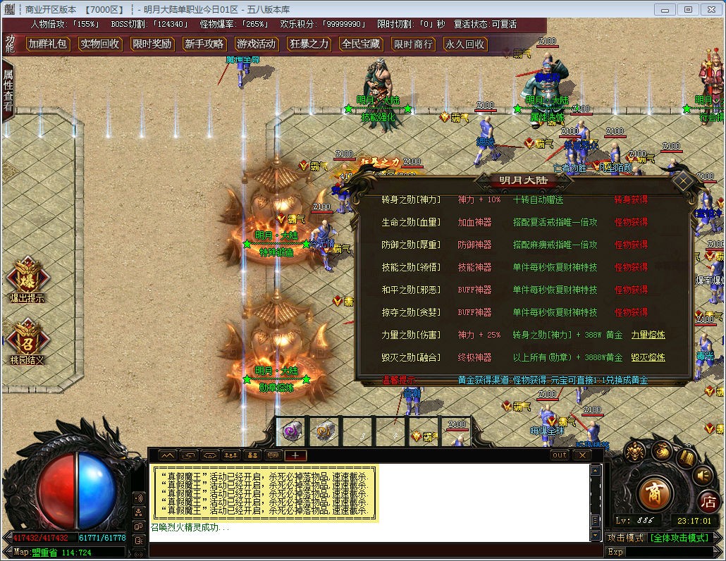 明月大陆单职业神器微变暗黑鉴定传奇服务端-带假人光柱-全民宝藏