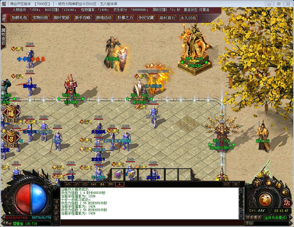 2.跟着地图一个个打过去,不要越级打BOSS, 打到元宝 记得先转身 转身只烧元宝