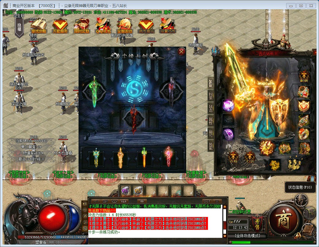 最新剧情奇遇流0次米神器来袭。进服就送刀刀切割 送狂风万法秒砍88刀直切最强BOSS,近百种专属神器数百个隐藏地图全屏拾取。自动回收.实物乱爆.限时超多小怪除一切全民带专属