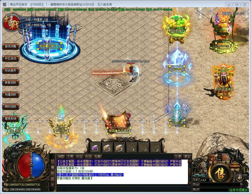 装备永久原价回收,不分新区老区.每天开放福利活动,送出大量卷,10米既可
