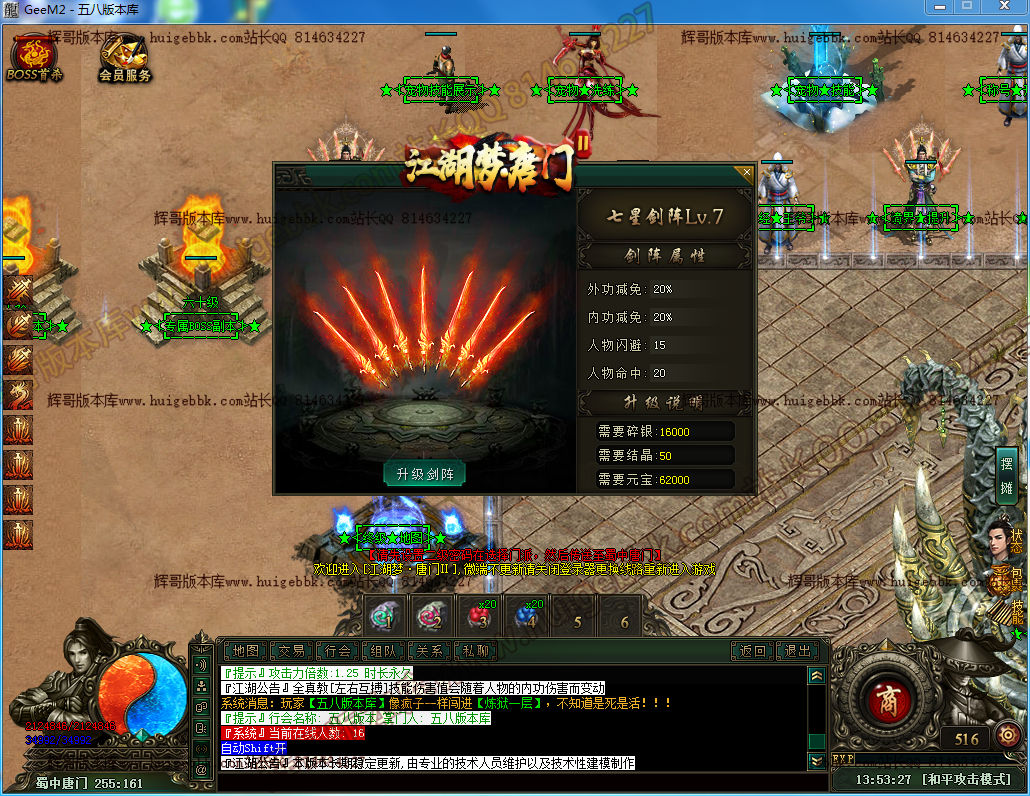 2.初期的特殊装备【左手爪】【剑阵】【无字真经】【玉佩】都是通过土城的NPC可以进阶,增加大量的米素和基础属性!