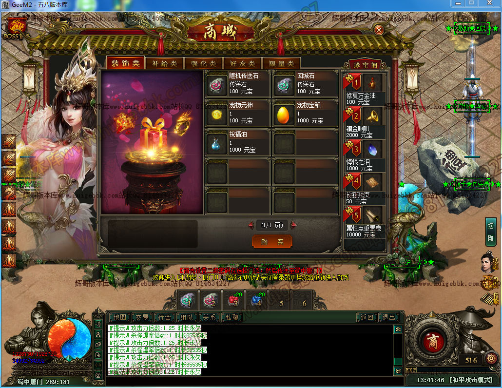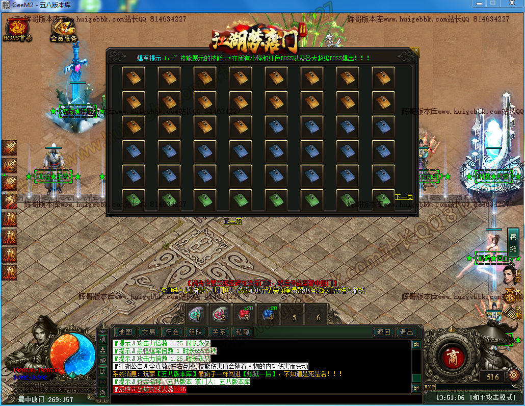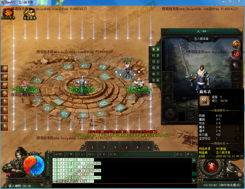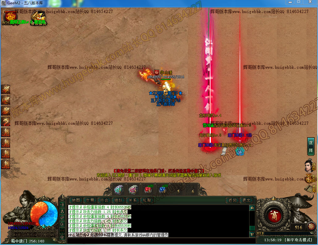 第三:福利BOSS 每二小时一次 刷新在土城 爆出大量元宝 装备 特殊等等 怪物基本无攻击!