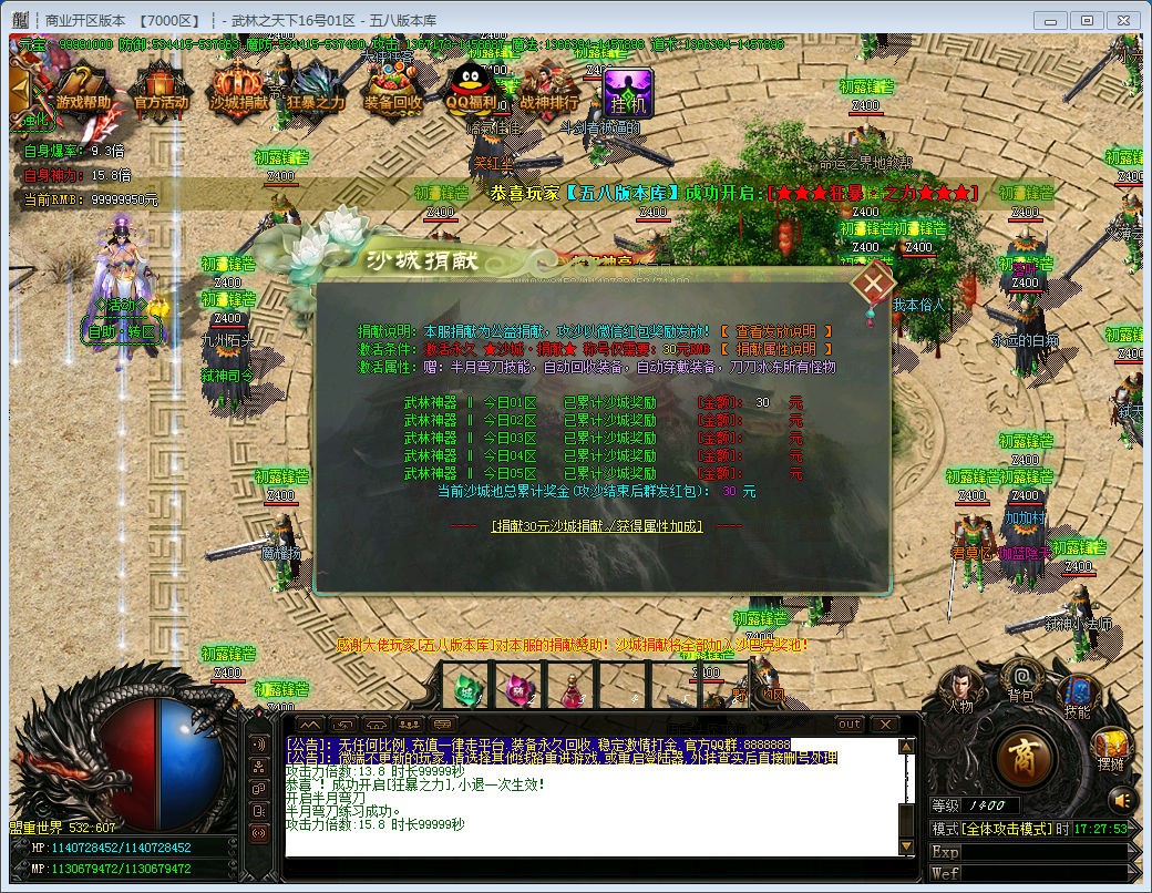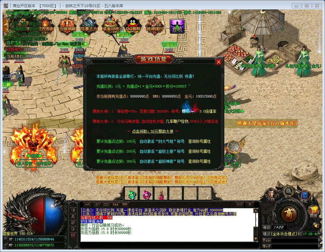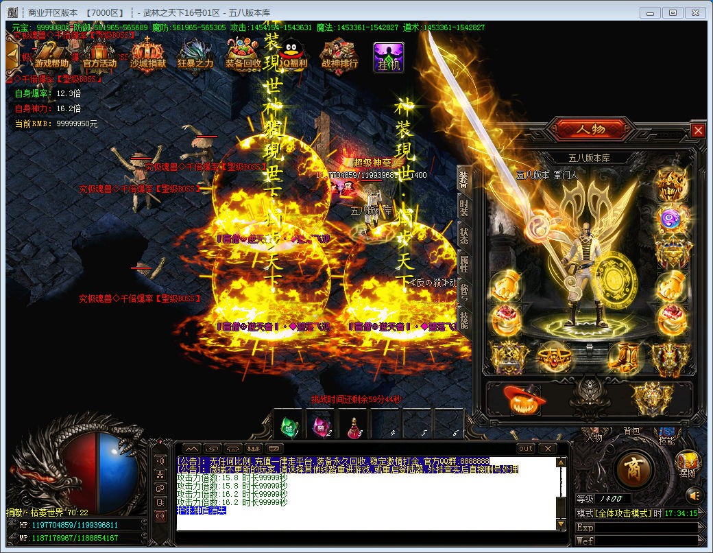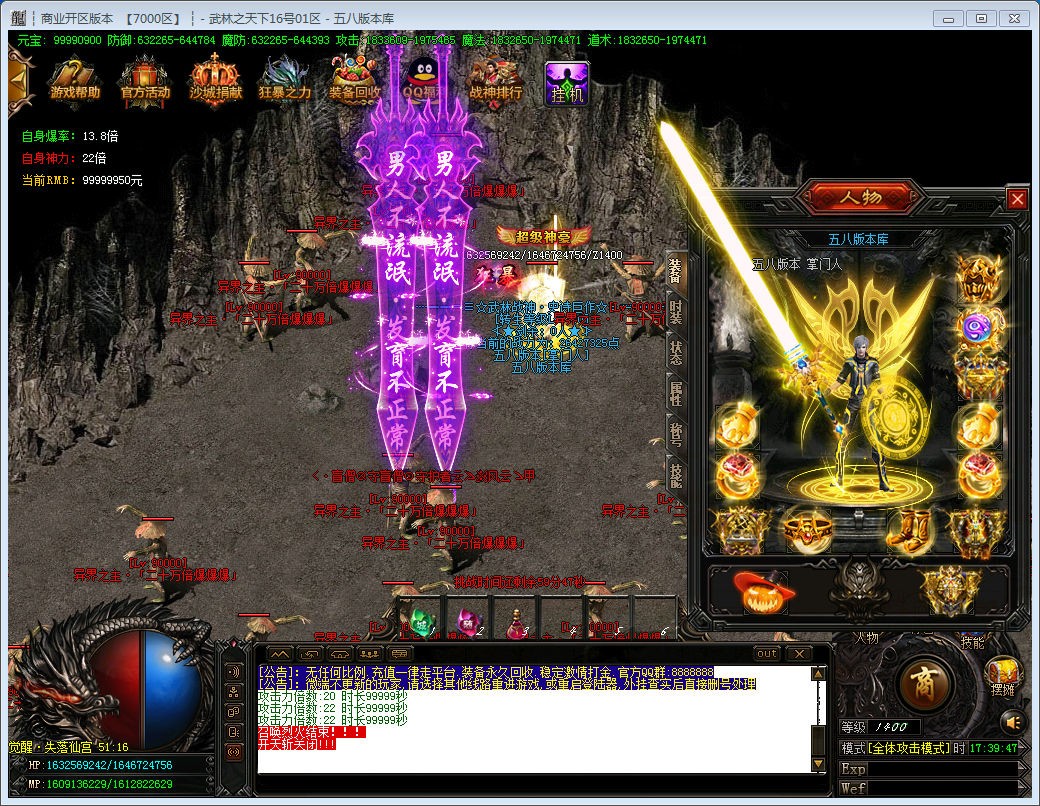【游戏特色】: 重金广告,人气火爆 上线免费送刀刀切割 精灵自动捡物 爆率全开 装备保值 永久回收!