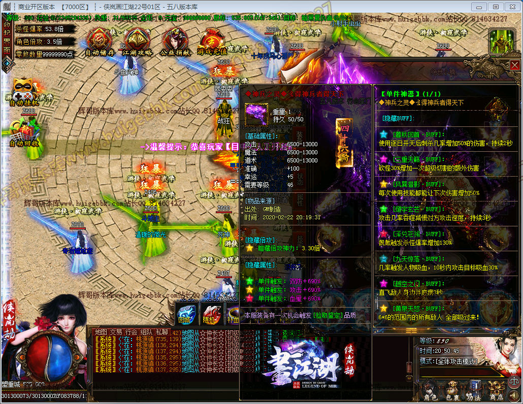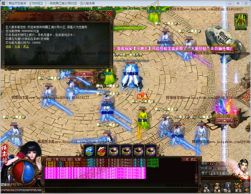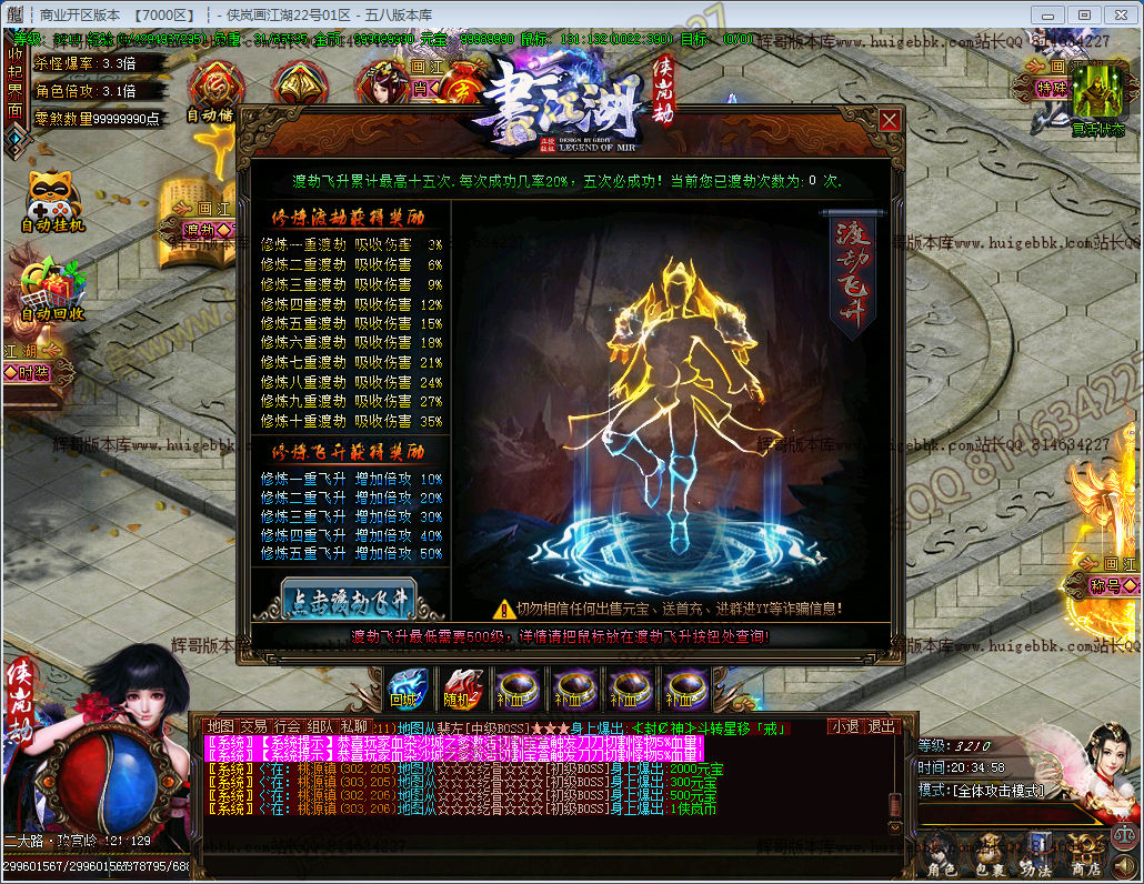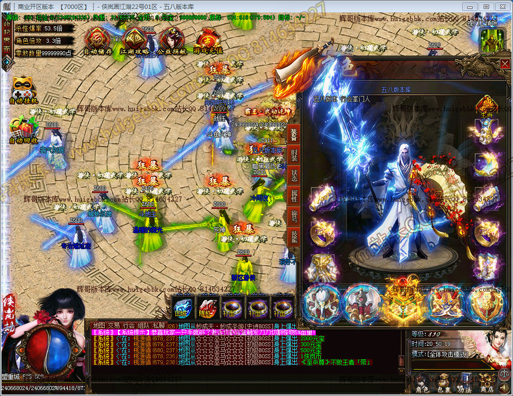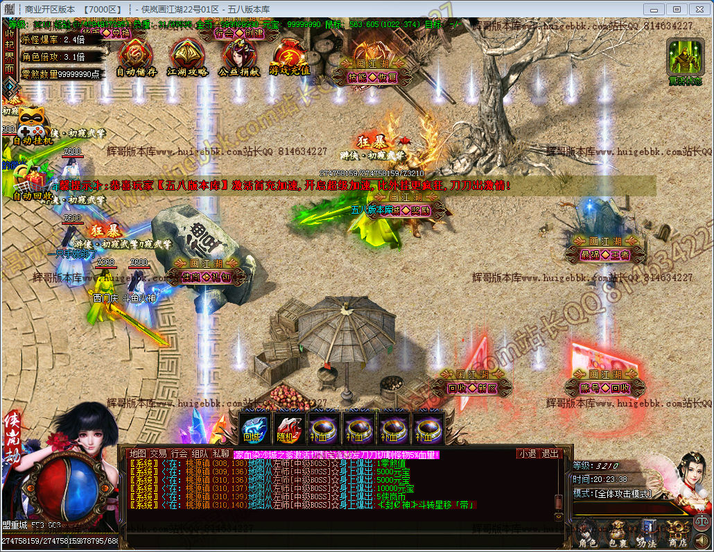独家侠岚画江湖灵飞纪BUFF神器变态激情加速无限刀神技单职业传奇版本-带智能假人光柱