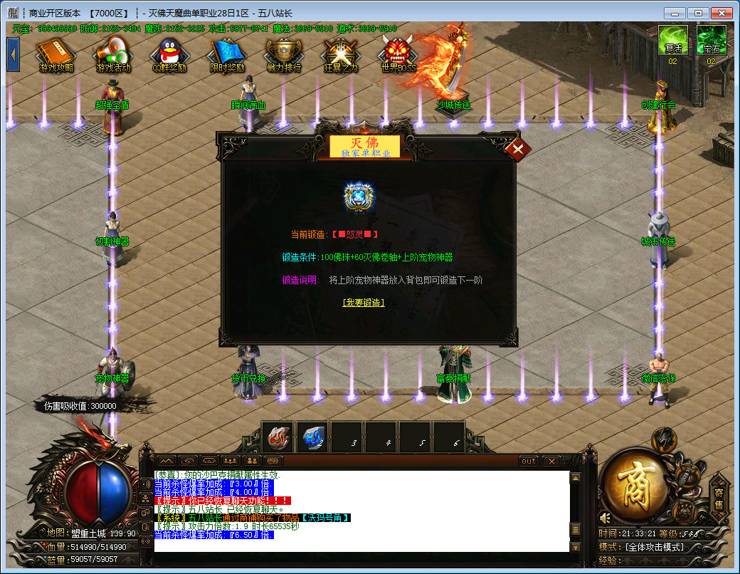 中资:沙城捐献+赞助会员+狂暴+切割神器.满神器100%刀刀切割怪物1%血量.绝对超值
