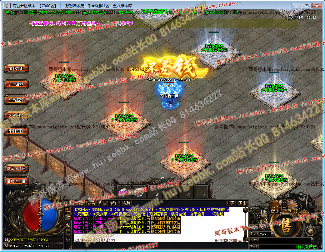 本服地图包含多个大陆,达到相应要求进入!本服爆率全开,所有地图均有几率爆出终极装备!
