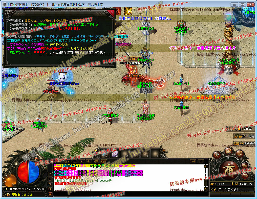 注:本服全网最高爆率[最低消费],承诺:十万年怪一直到千万年怪开始爆圣裁(次次终极)(1/100机率)