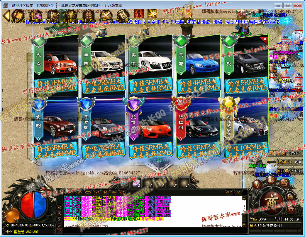 ②:充值18米满赞助,沙巴克公益捐献10米+10米点开狂暴,进阶地图打宝爆率高!