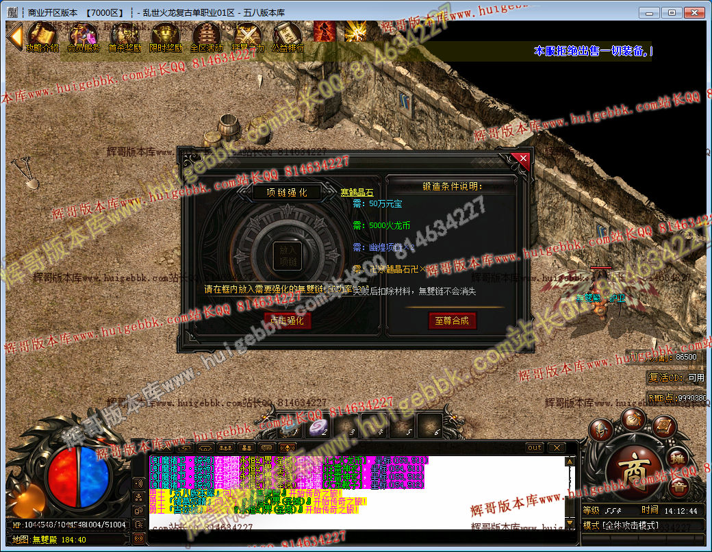 ⑤:注意:皇帝时装所有区28888火龙币合成,不会关闭合成!