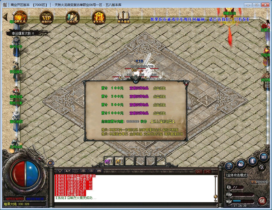 本服只出售自动充值的货币,元宝比例:1:5000 灵符1:2