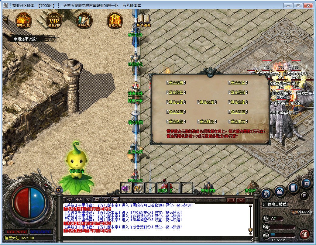 5.打到的多余材料可自己用也可出售.本服材料保值.装备保值