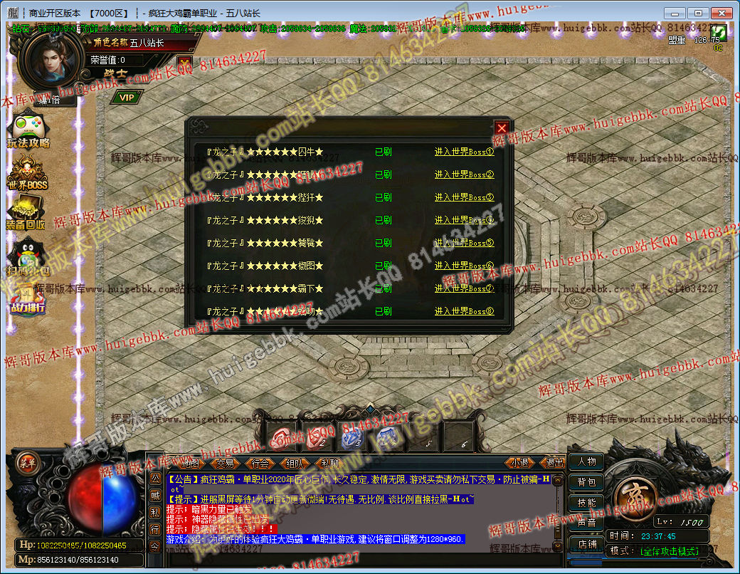 怪物刷新:普通怪物刷新时间为30分钟,BOSS刷新时间为60分钟,所有地图均有不等数量的BOSS.请注意公告红色提示.