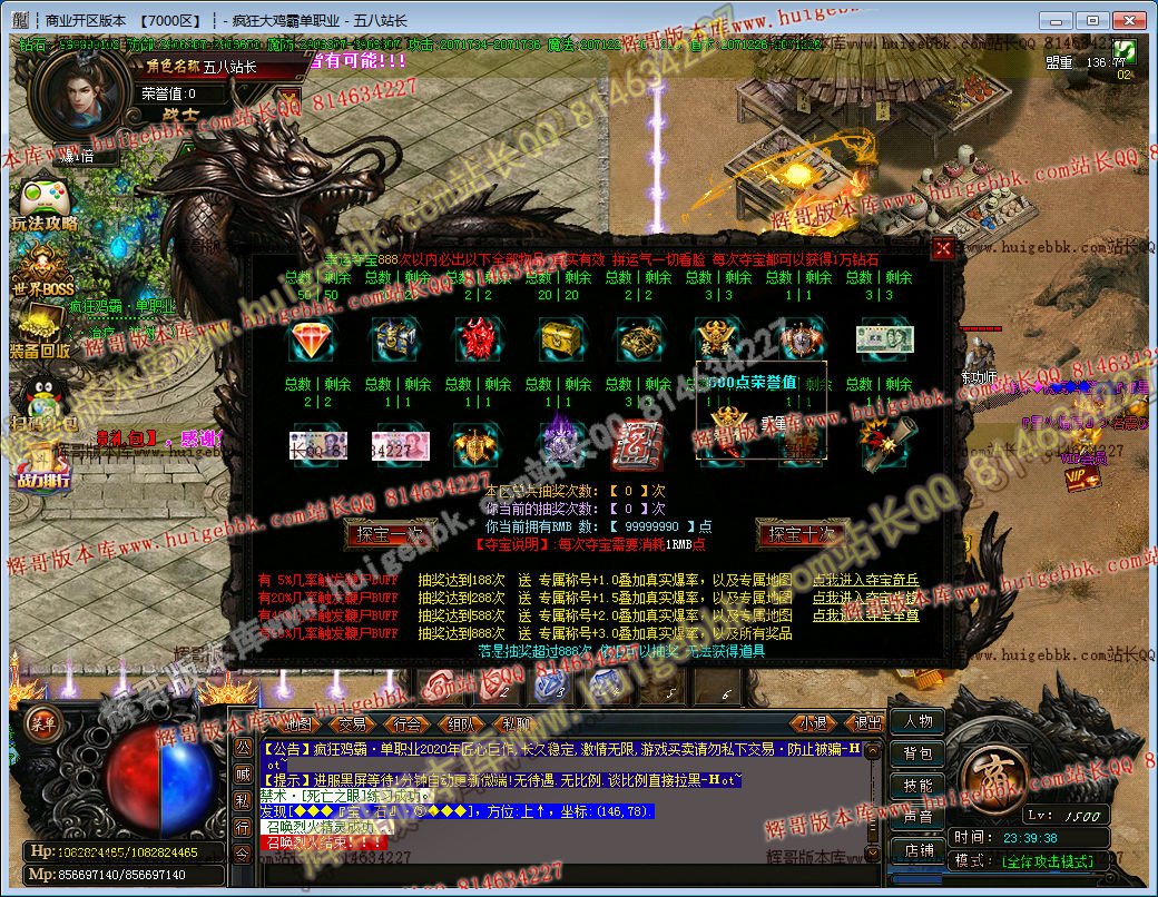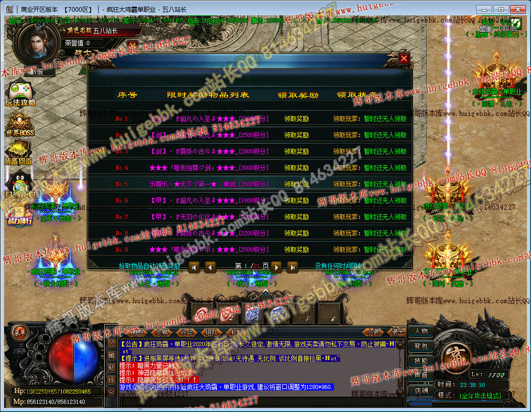 装备介绍:本服共计上千件各类装备,含倍攻首饰、时装、生肖、特殊等,终极装备、爆率全开、新手怪都爆终极.