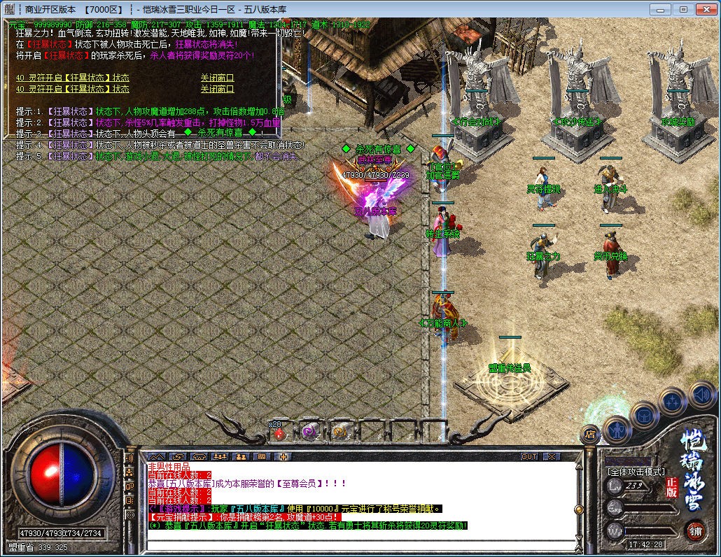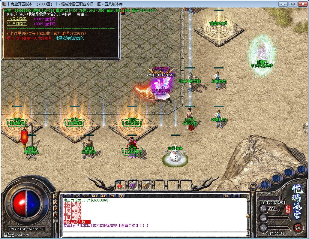 [恺瑞冰雪]:所有装备属性平衡合理,100%无秒杀现象,散人均衡发展。