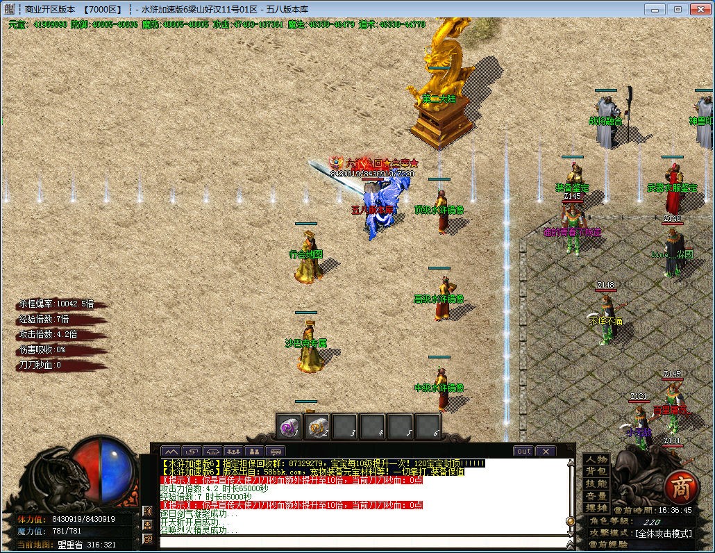 版本介绍:新人_上线+倍加速、百万攻击、10倍爆率!赞助免费打!第三天合区!!!