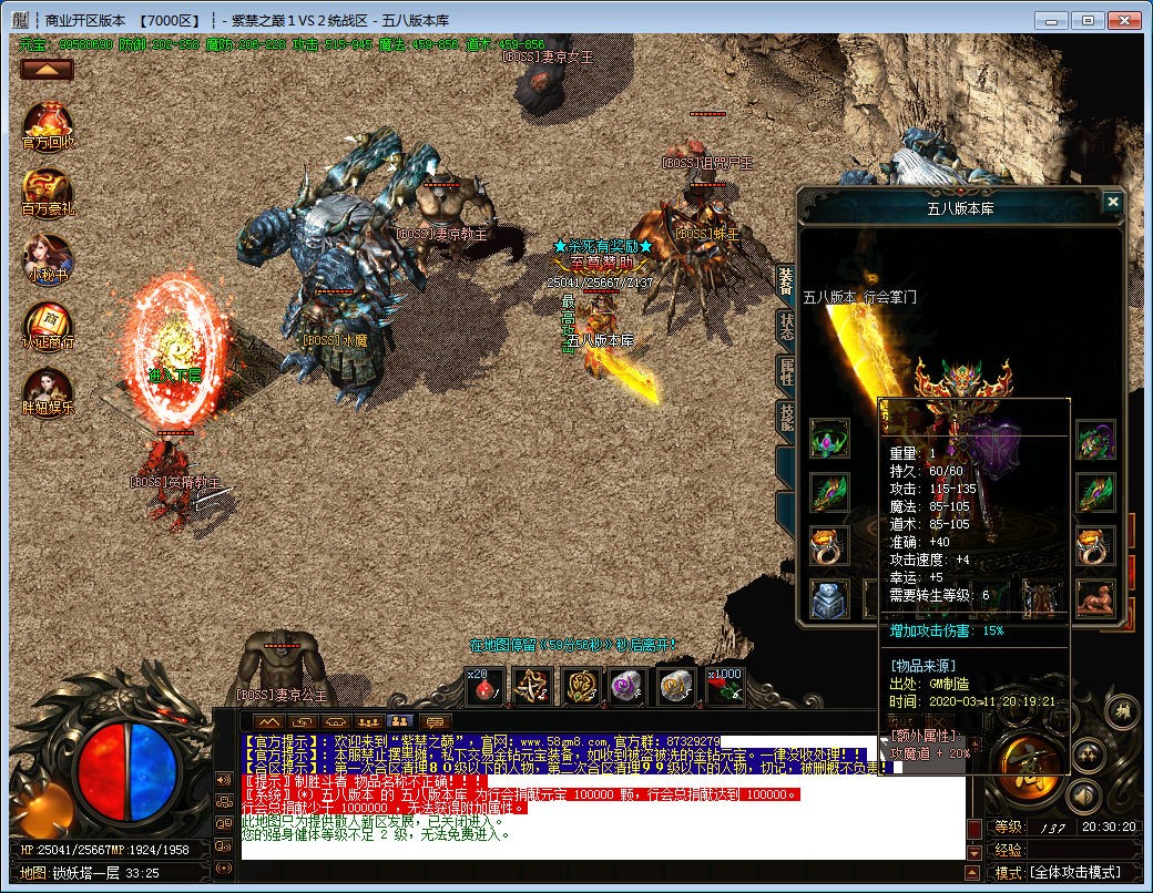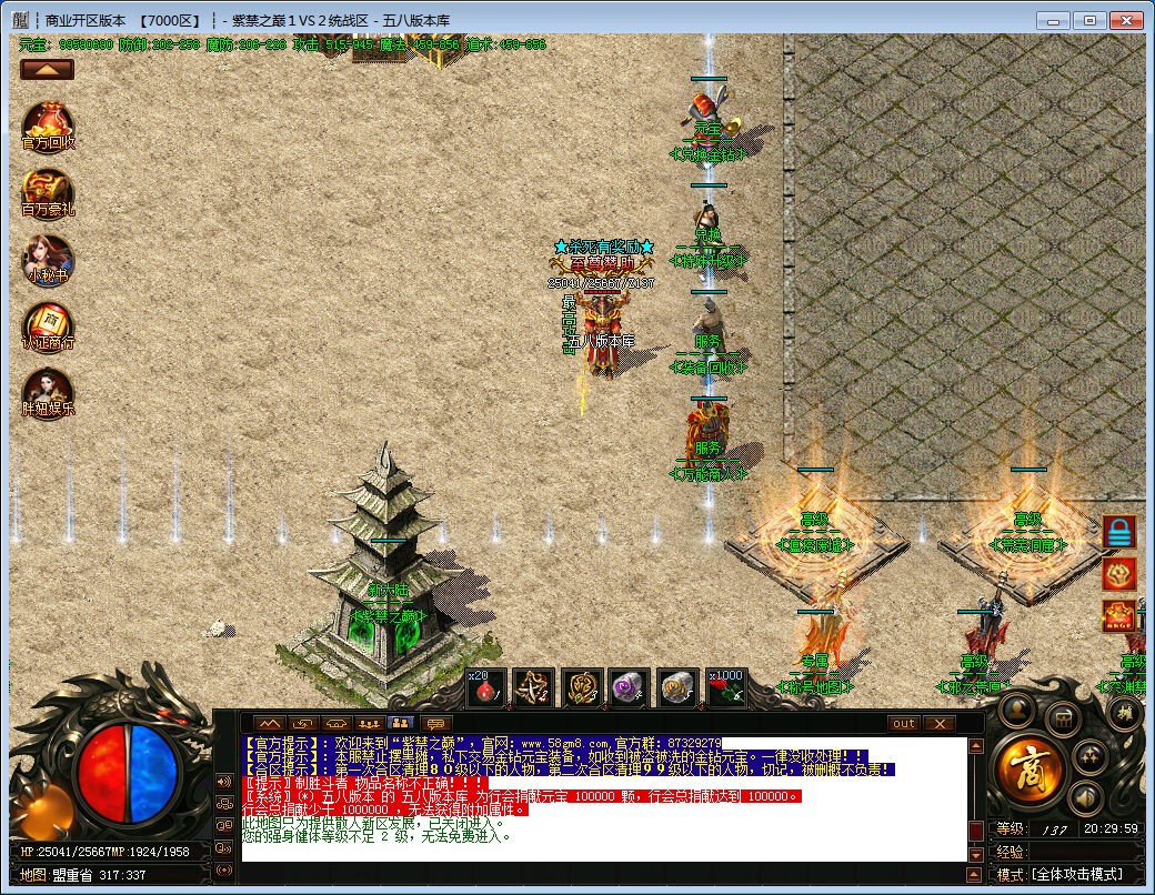充值比例:充值1: 10000 永久回收1: 11500官方元宝保底12W=10米
