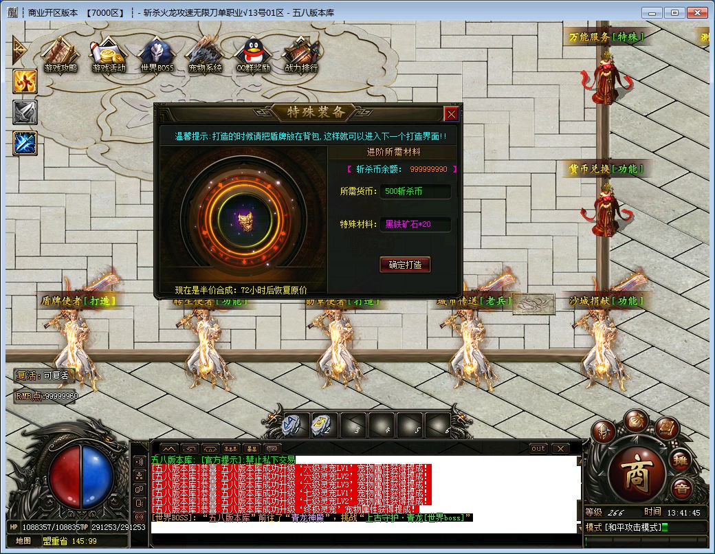 攻略6:散人玩家打到的实物可兑换正常充值.积分还可兑换新区充值.见QQ群兑换文件