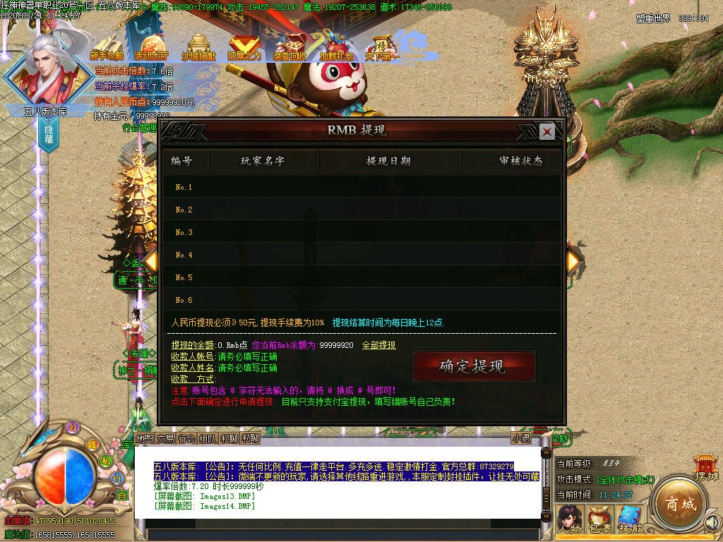 【冲值比例】1米=2000狂神币 +300金米+1充值点。