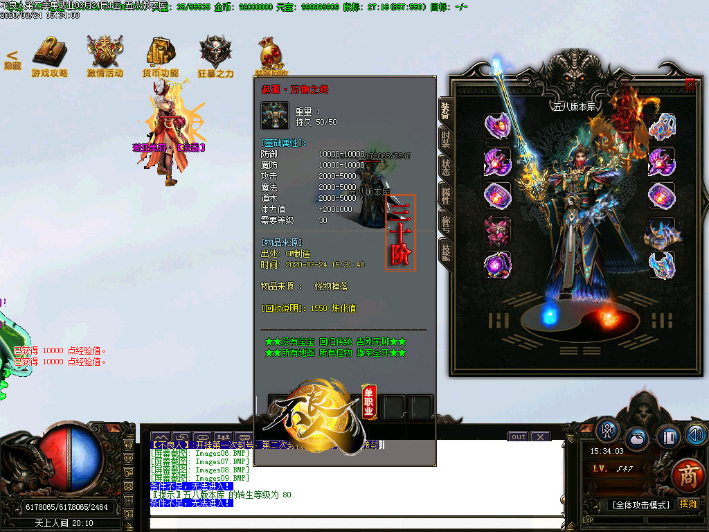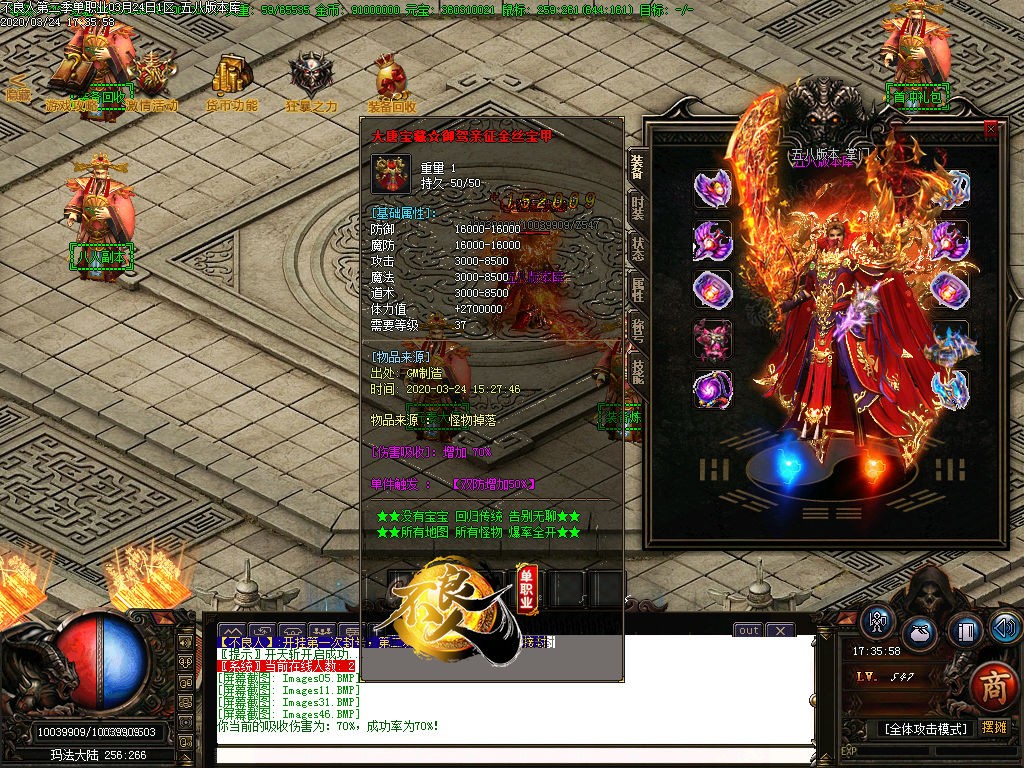 【游戏特色】:一切物品全部爆出,一键合成,在线回收,超炫封号,各种神技,超牛道宝。