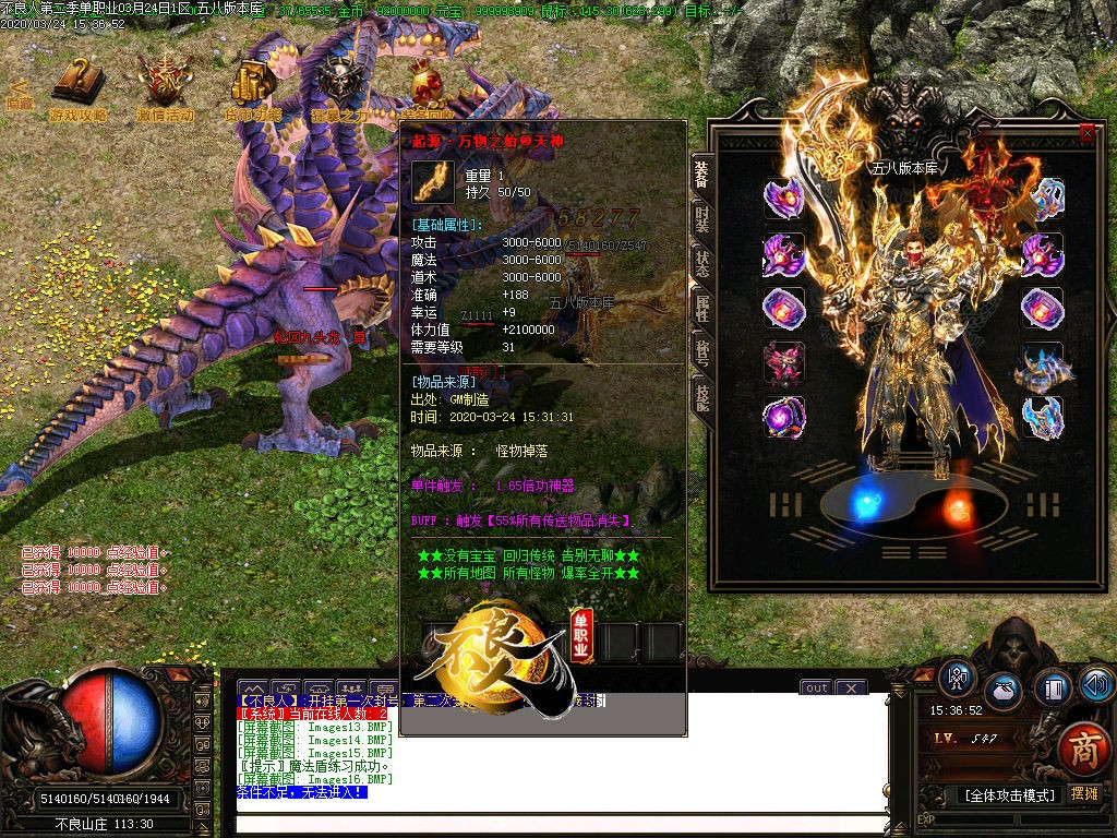 【怪物爆率】:本服爆率真正全开,全屏BOSS,血量越多BOSS爆率越高,一切看脸,所有怪物均开放终极爆率!