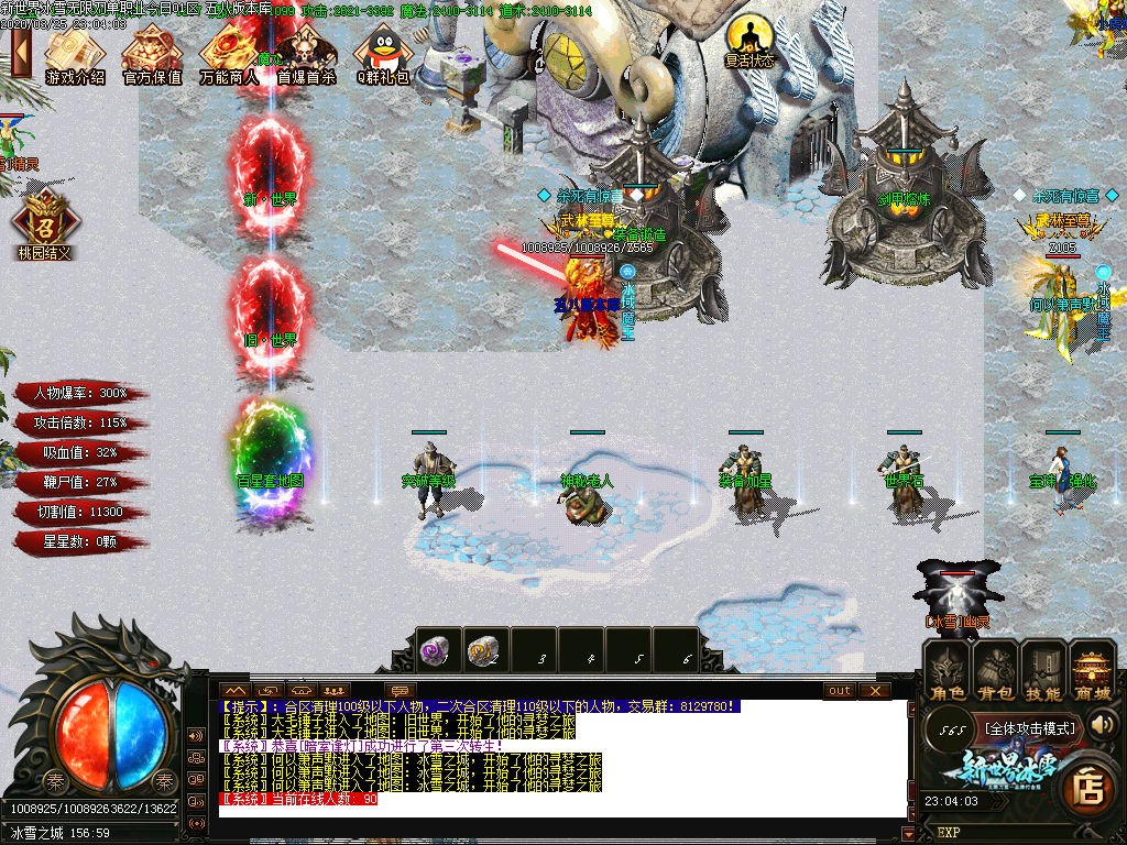 新·世界冰雪【新世界公告】充值比例:1米=50金币 测试期间充值多送20%
