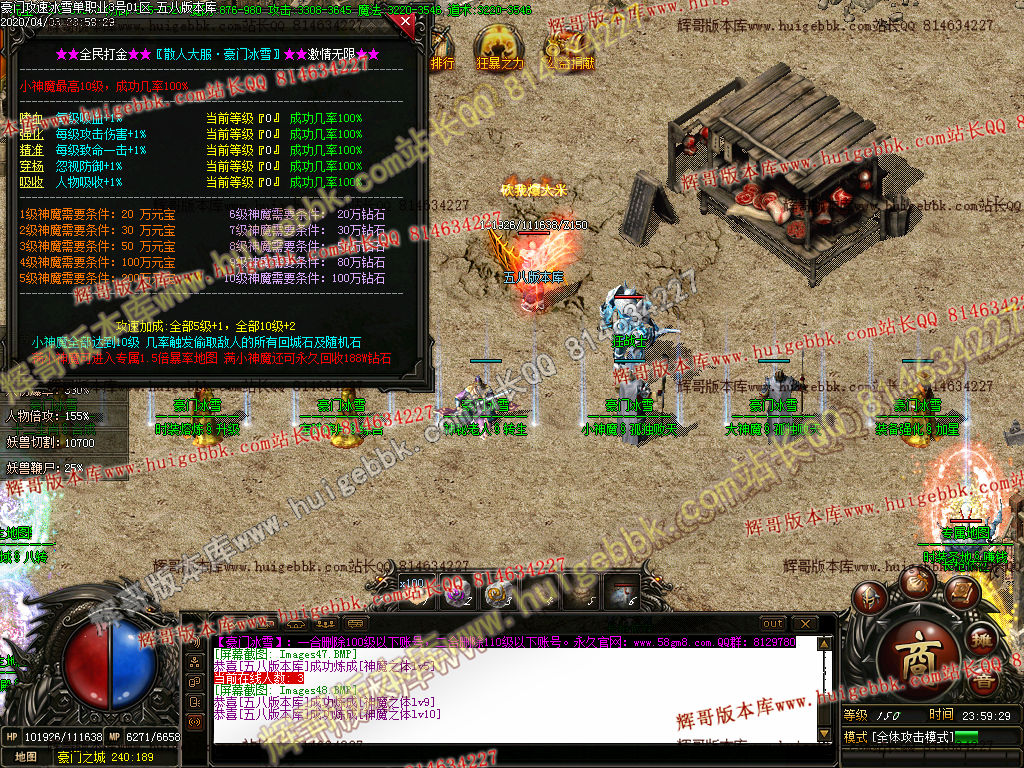 1豪门攻速冰雪·所有装备一切都爆.小怪爆一切装备.妖兽爆率稍微高一切看脸。只要你付出绝对有回报.时间=金钱完美转换!