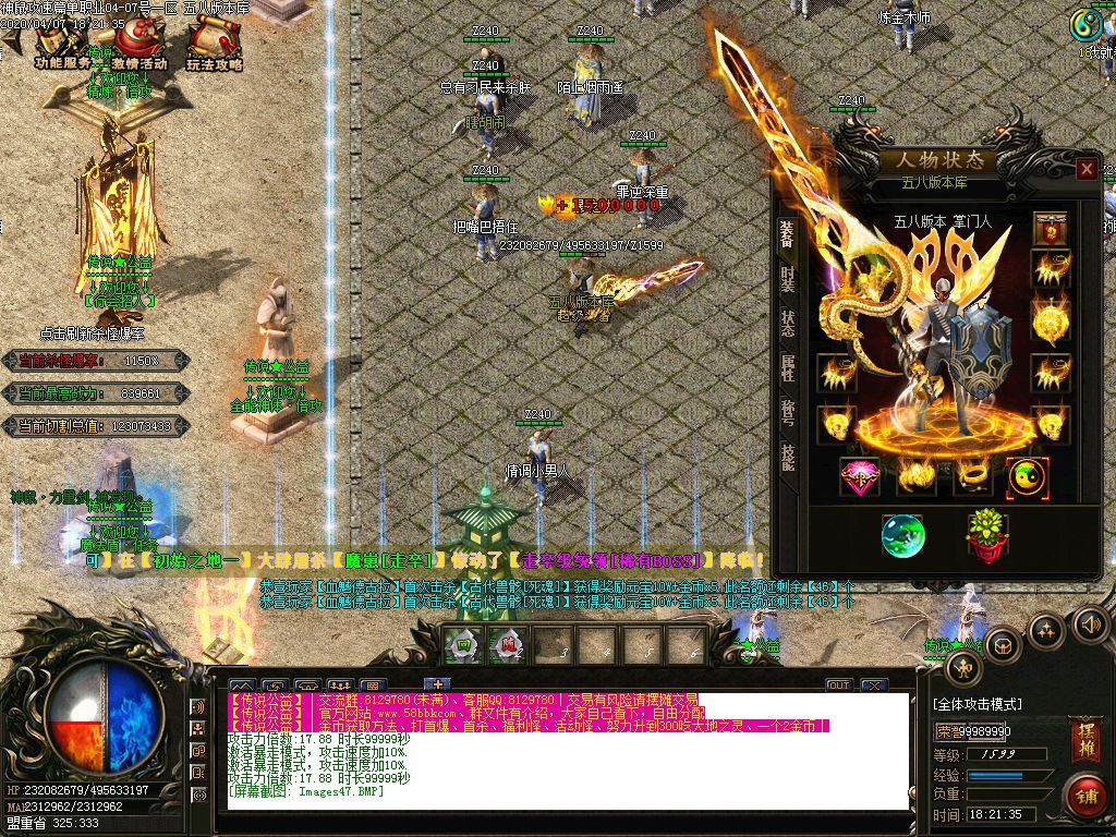 1.上线任何地图自动泡点等级.进入初始地图打点初期装备,初期材料!元宝!打boss首杀有金币