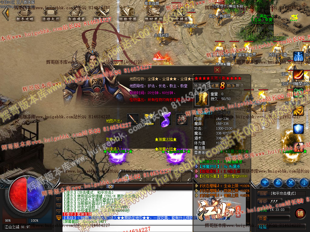 │★★★★★怪物刷新时间:全爆怪20分钟.暗黑天荒60分钟.上古神王180分钟★★★★★ │