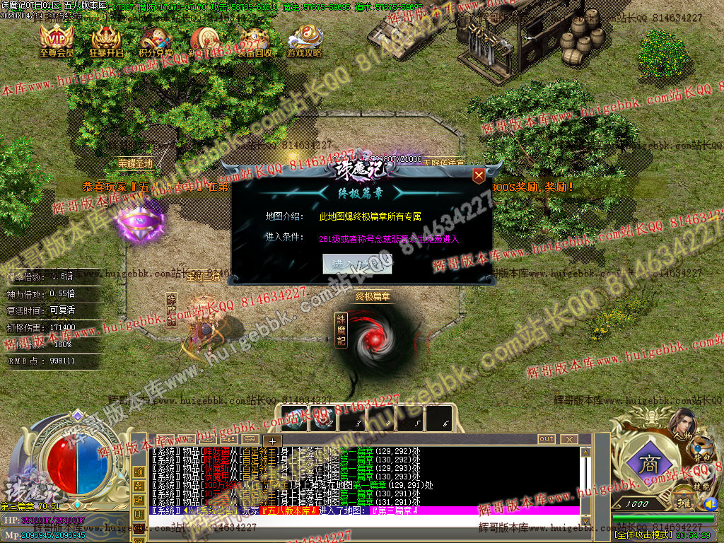 努力进终极篇章,终极篇章才是本服起号的开始。终极篇章一共5张地图,每个地图都有5-10个装备专属怪,打到部分专属后,再进远古地图,