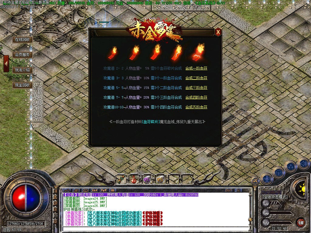 四、装备层级:祖玛-赤月-雷霆-强化雷霆-战神系列(终极) 赤金装备好打 本服强调的是小极品 一切靠脸。