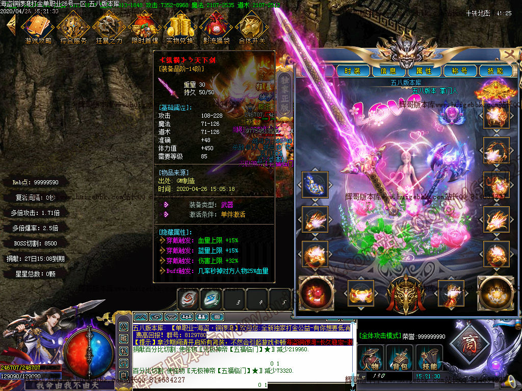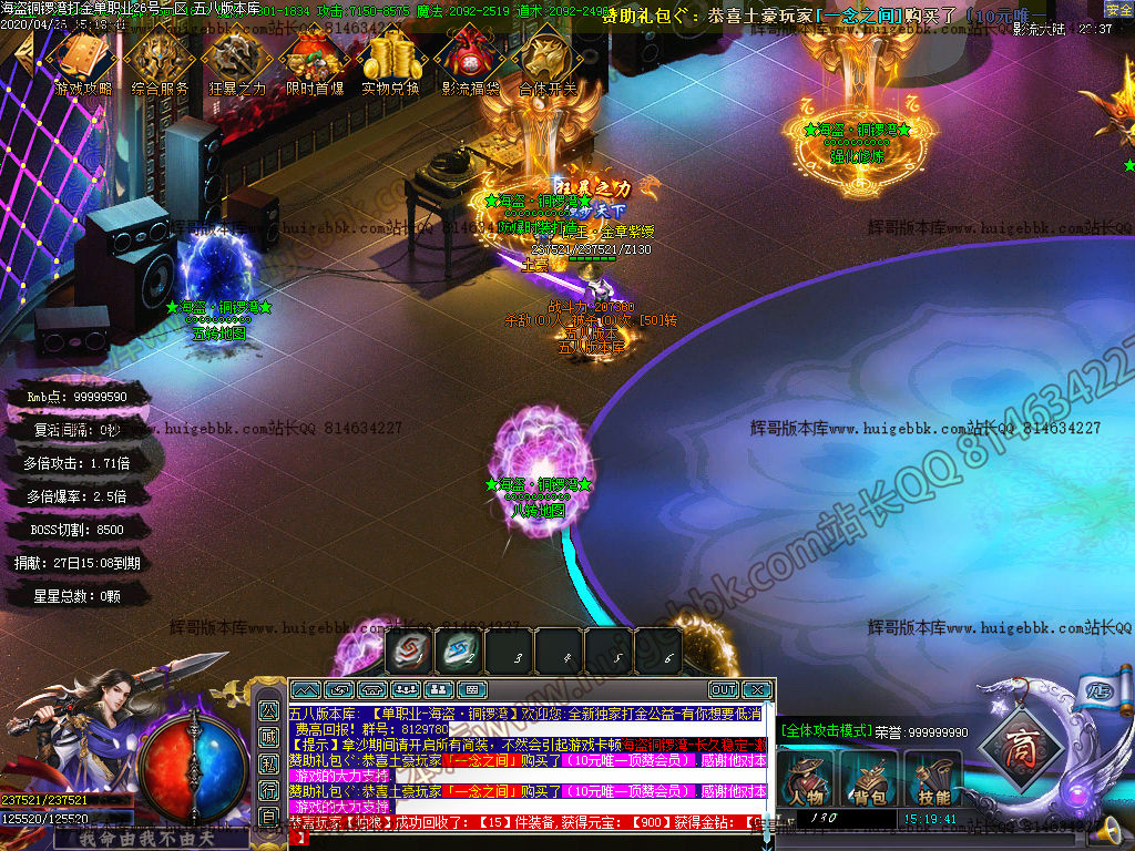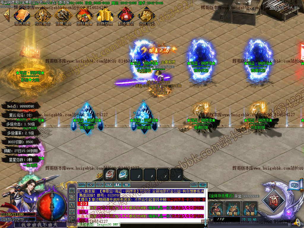 ③: 影流宝箱在转生地图所有BOSS的爆率为1/5 合体地图和郡王官爵地图爆率超高