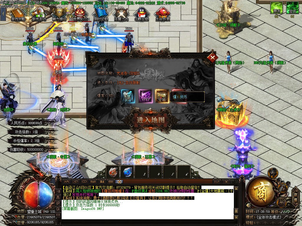 狂暴地图保底:2个BOSS 最少掉32-37阶装备(终极40阶)