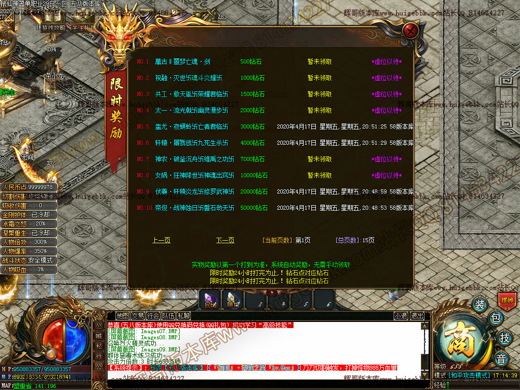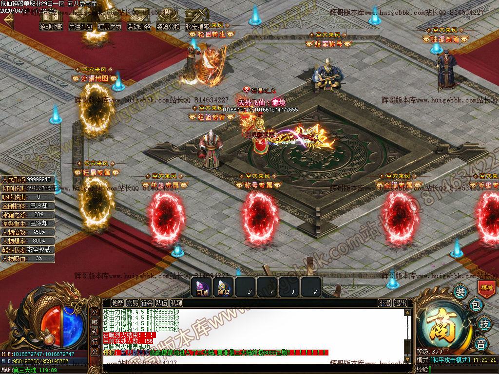 ①:本服领QQ群礼包可获得永久冰冻、刀刀切割、逐日和开天斩等,真正做到不花钱上线就能撸死所有BOSS…